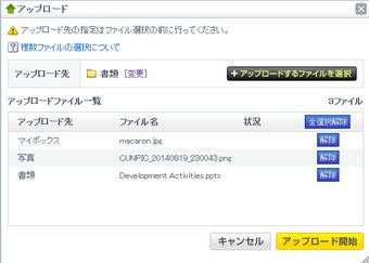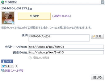 アップロードしたファイルは、公開設定をすることで、他の人に共有することが可能です。まず、共有したいファイルを選び、公開設定をONにします。次に公開用のURLをFacebook、Twitter、Eメールなどで共有したい人に伝えましょう。URLを開くと公開中のファイルの閲覧・ダウンロードができます。